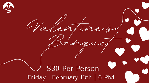 Join us for this year’s Valentine’s Banquet! Couples of all stages are invited to enjoy a catered dinner and a fun-filled evening featuring our “Not-So-Newlywed Game.”
